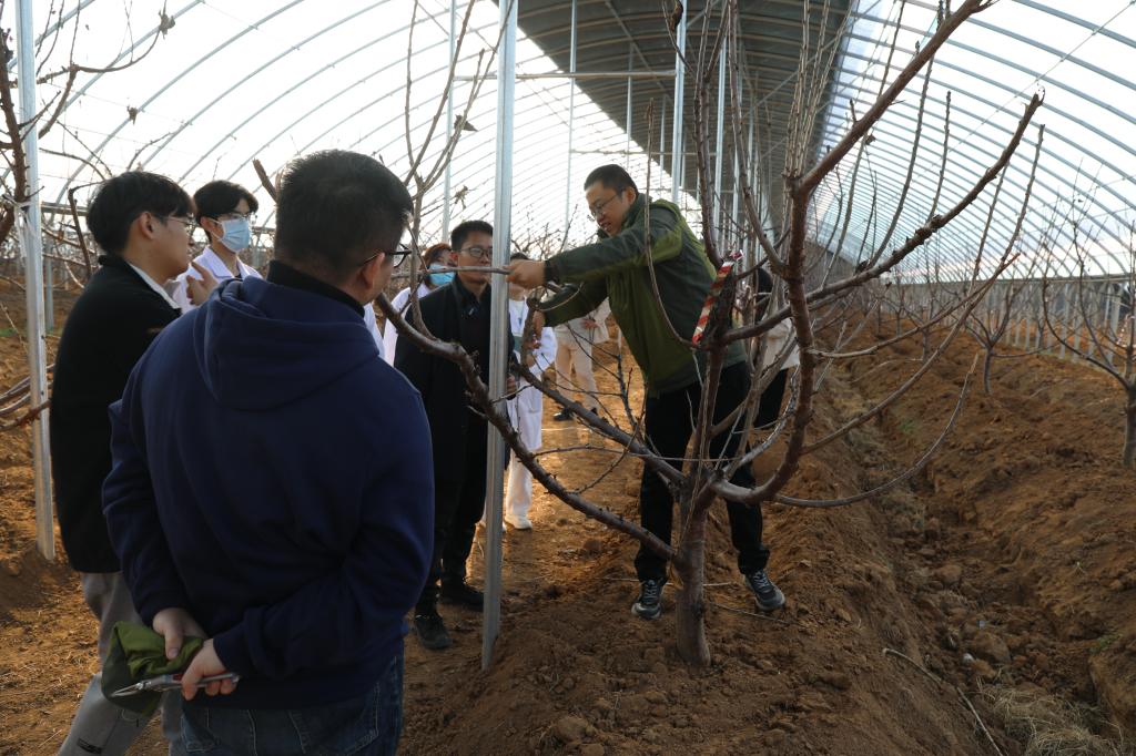 专题学习会后,党总支书记郭传鑫带领带领科技服务小队师生在樱桃种植大棚开展技术培训,了解樱桃冬季栽培过程中存在的问题,并对果农们提出的问题进行了有针对性的解答。