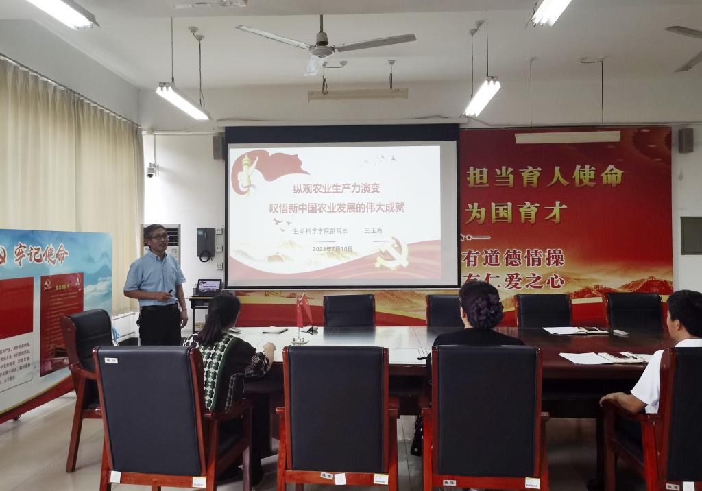 为推进学习贯彻习近平新时代中国特色社会主义思想主题教育走深走实,PA集团官网认真贯彻主题教育的标准要求,自觉学思想、见行动。7月10日,副院长王玉海以《纵观农业生产力演变,叹悟新中国农业发展的伟大成就》为题,为学院全体党员讲授专题党课。