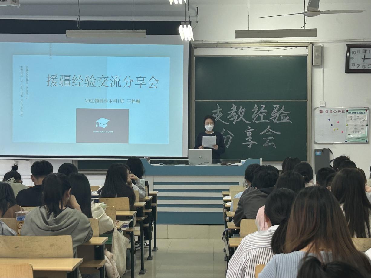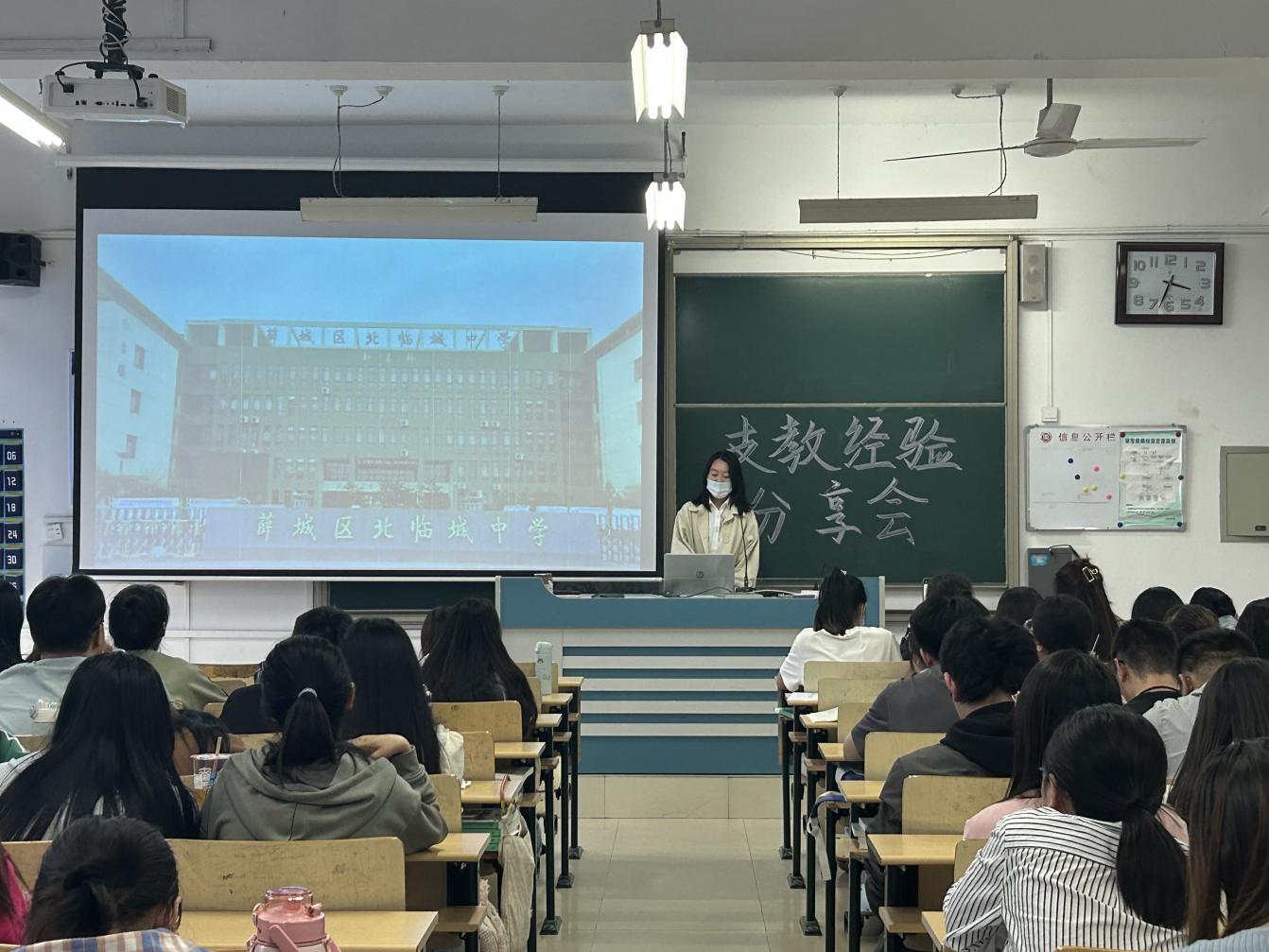 为弘扬五四精神及志愿精神,同时为更好的推进支教实习工作的开展,2023年5月10日下午,PA官网在理工楼2218举办了五四青年说之“守育人之初心,行支教之路”支教经验分享会活动。此次活动邀请了20级新疆支教学生刘雨凡、王梓璇,枣庄市支教学生邹琳琳、潘天一、祖爱华5位学子主讲。21级、22级师范专业学生参加了此次交流会。