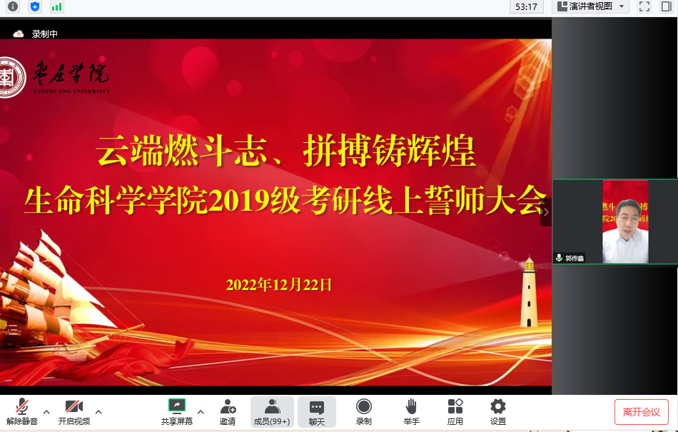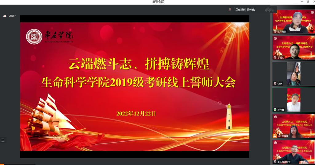 为帮助考研学子缓解考试焦虑,坚定考研信心。12月22日晚,PA集团官网隆重举行“云端燃斗志、拼搏铸辉煌”2019级考研线上誓师大会。学院党政领导、辅导员、19级班主任、各指导教师、2018级读研学长代表、家长代表、其他年级代表和全体2019级考研学子以“隔空对话、隔屏传情”的方式参加了活动。会议由党总支副书记韩笑主持。