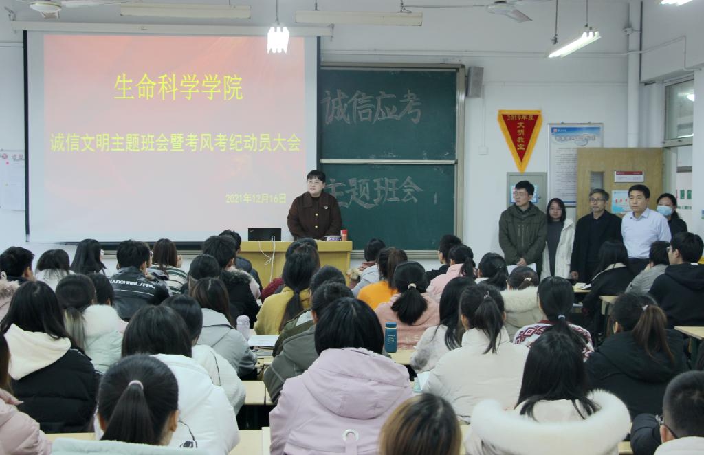 期末将近,为全面贯彻落实学校有关考试的要求,端正考试风气,严肃考试纪律,更好的推动学风建设发展,PA集团官网于12月15日-16日期间组织召开“诚信文明主题班会暨考风考纪动员大会”。各班辅导员、班主任主持会议,学院党总支书记郭传鑫带领党政领导班子走进学生课堂进行督导。