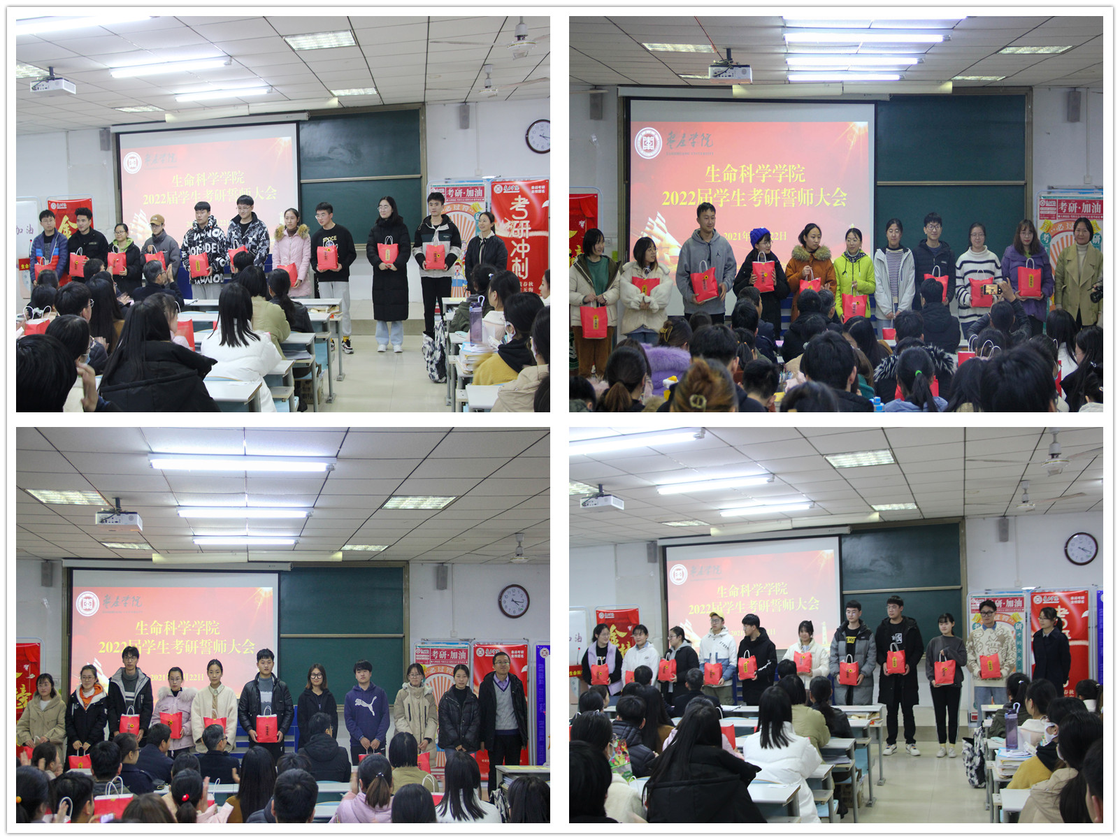 大会上,播放了来自在校生学弟学妹以及往届考研成功学长们的加油视频,李志军同学代表在校生送上对考研学子最真挚的祝福,崔荣慰同学代表全体考研学子感恩学校的培养与关怀,前院学生会主席杨深琳同学带领全体考研学子进行了慷慨激昂的宣誓,表示一定不辜负家长期盼,恩师厚望,勇往直前,决胜考场。