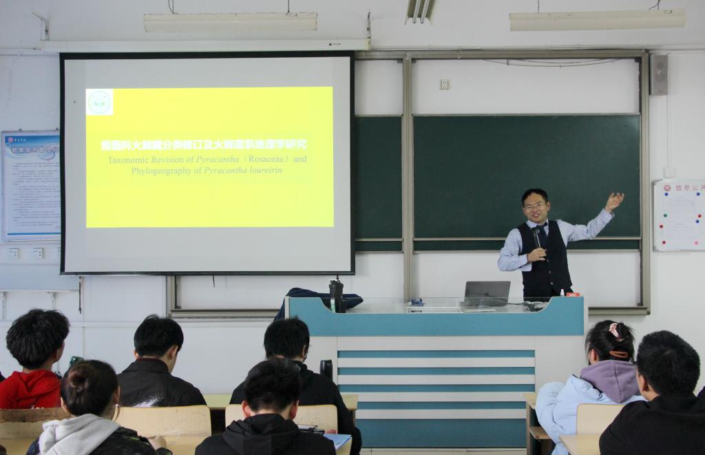 为增进同学们对植物科学的理解,拓展学生的专业知识视野,PA集团官网安排新入职教师冯慧喆博士于12月8日在理工楼2218教室为学院21级全体学生作了关于植物分类的学术报告。