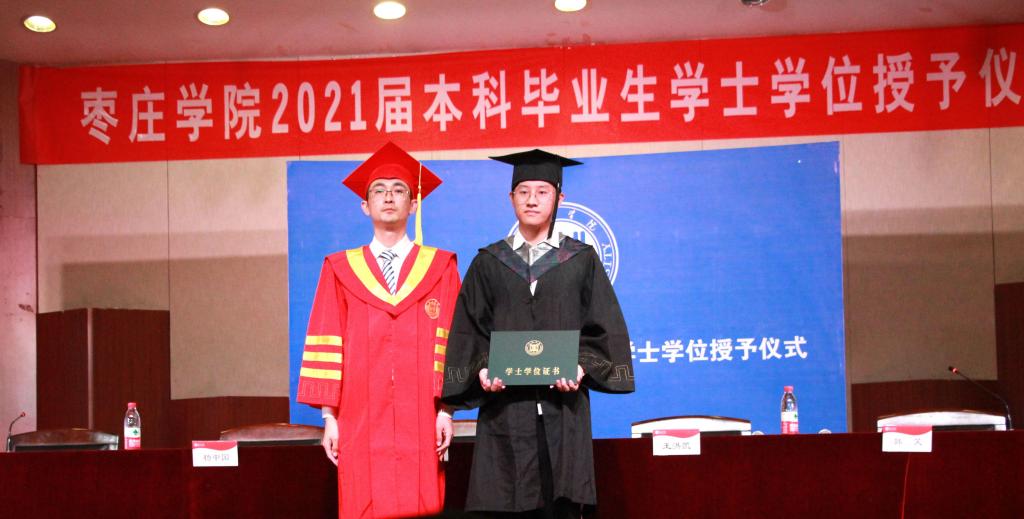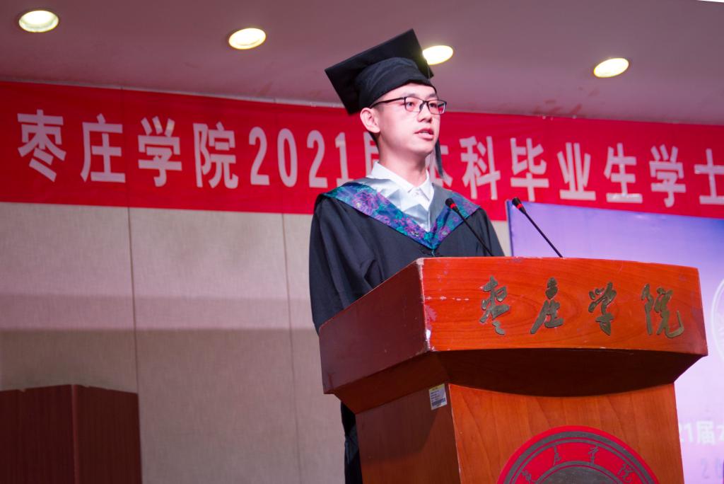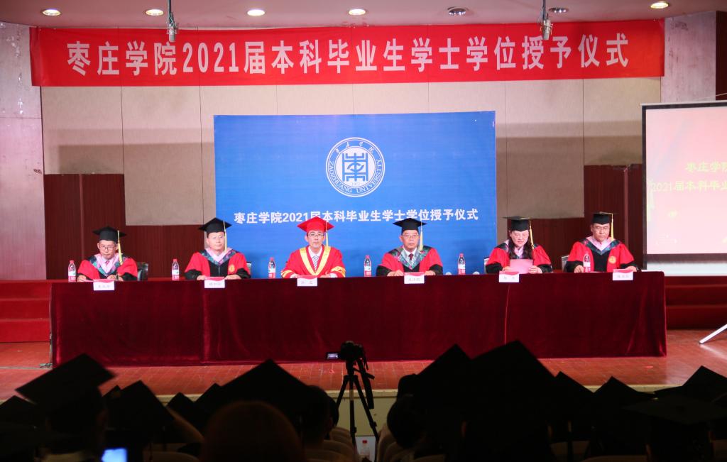 仪式在嘹亮的国歌声中正式开始。副院长王玉海教授宣读了《枣庄学院学位评定委员会关于授予安子欣等109名同学学士学位的决定》。