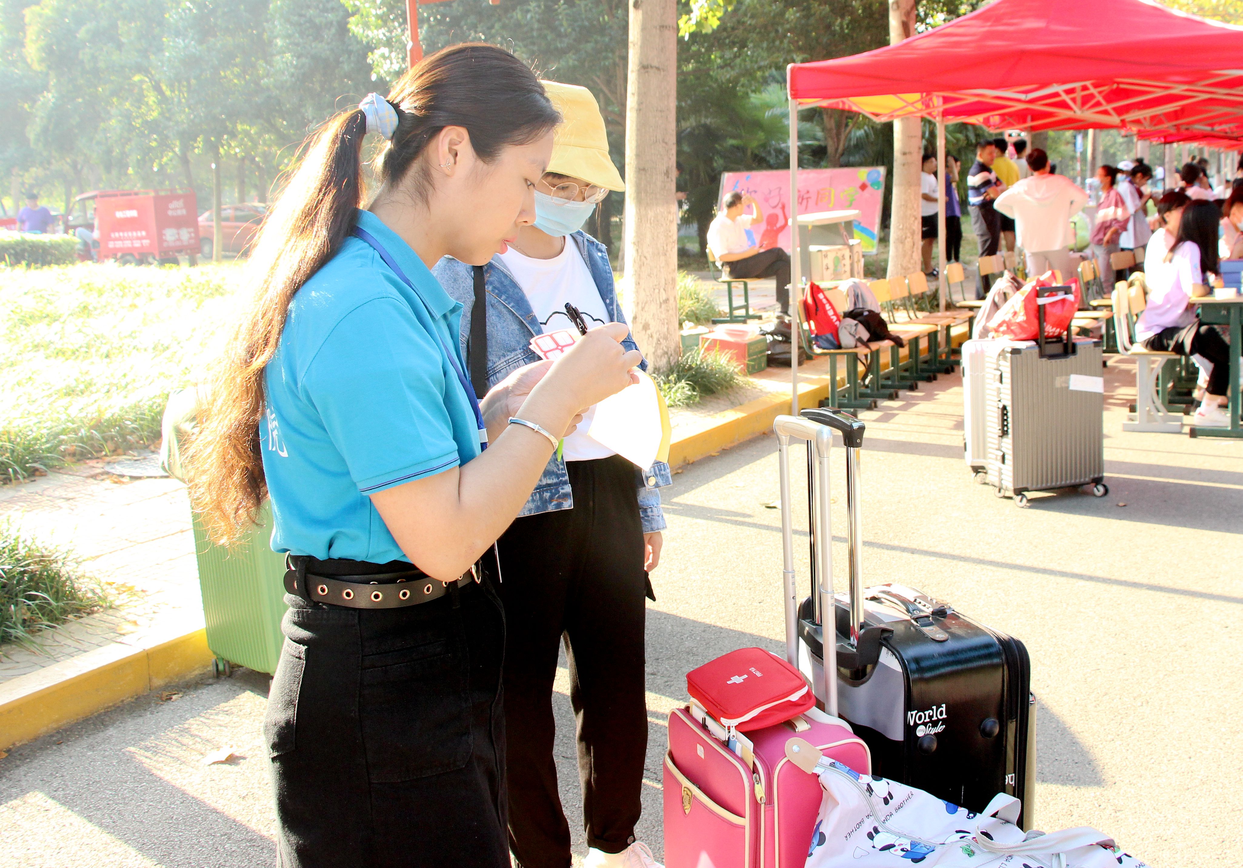 在学院迎新接待服务点,校党委副书记曾宪明十分关心新生的报到服务情况,认真听取学院迎新工作汇报。