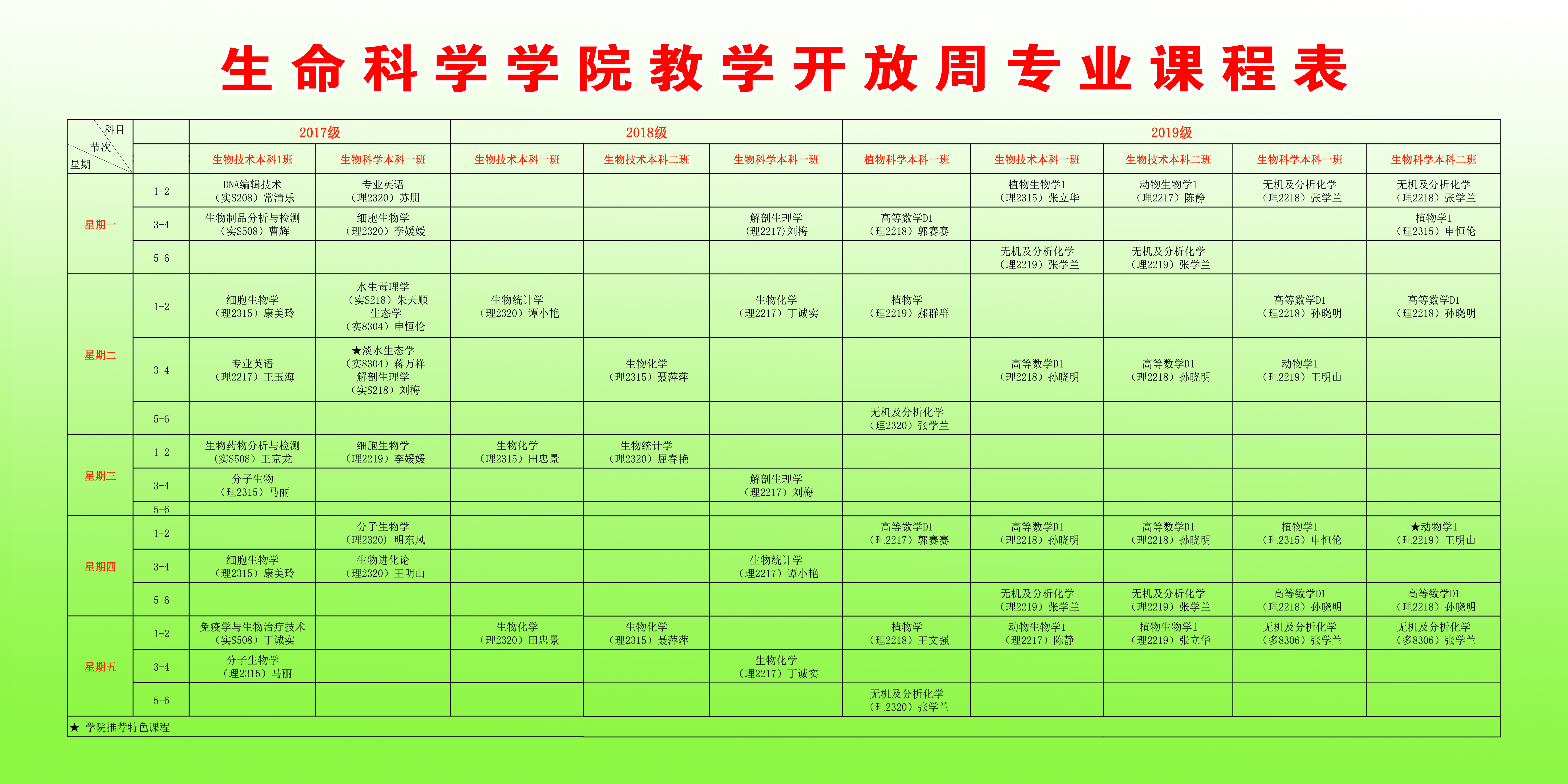 根据学校《关于开展2019-2020学年第一学期期中教学工作检查的通知》要求,PA集团官网教学开放周各专业课程安排如下:
