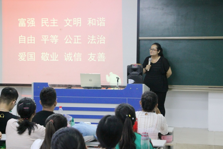 PA集团官网积极响应学校号召,开展19级新生入学教育活动。2019年9月10日晚7:30,在理工楼2205召开了社会主义核心价值观教育专题。本次会议由马晶老师主持,曹海青老师及2019级全体新生出席了本次会议。