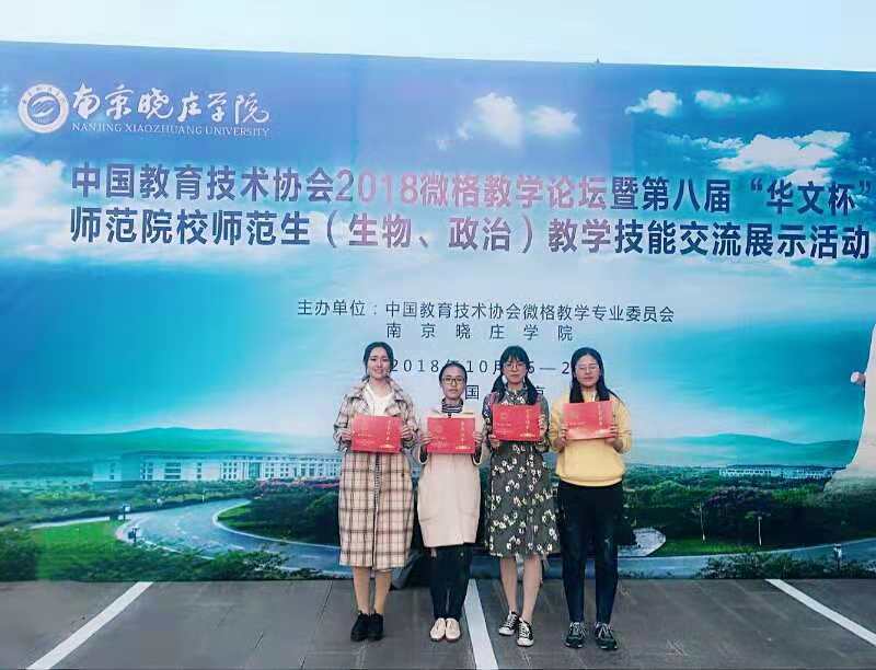 由中国教育技术协会微格教学专业委员会主办的第八届“华文杯”全国师范院校师范生教学技能大赛决赛,于2018年10月26—28日在南京晓庄学院举行。决赛由教学设计、说课、模拟授课和现场答辩4个环节组成,来自北京师范大学等106所全国师范院校的近700名选手参加了此次大赛。经过激烈比拼,PA官网学生表现良好,取得了优异成绩,2016级生物科学专业的于湘钒、刘艳丽、梁延群、盛文静同学在教学技能比赛中获得一等奖1项、二等奖2项、三等奖1项,同时获得4项教学设计奖。