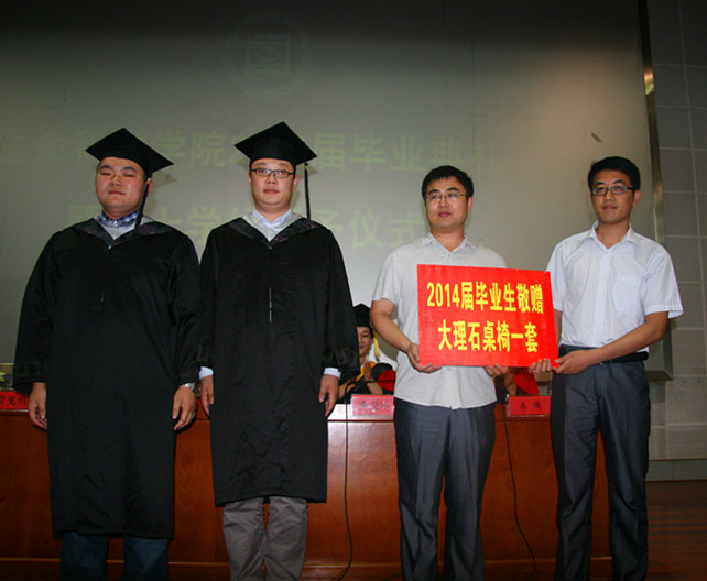 学士学位授予仪式之后,考取复旦大学研究生的优秀毕业生丁玲代表2014届全体毕业生向母校和辛勤培育了他们四年的老师表达了深深地谢意。满怀着感激之情、感恩之心,2014届毕业生向学院赠送纪念礼物。