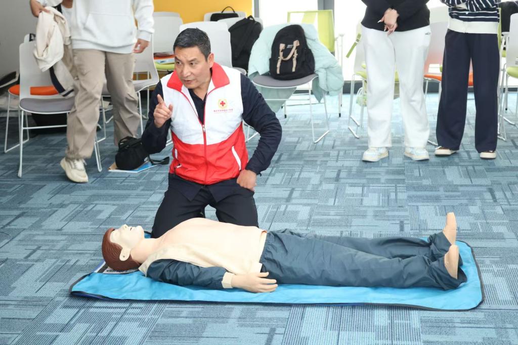 本次培训特邀市中区红十字会副主任护师彭照云老师与副主任医师王磊老师担任讲师。两位资深专家围绕“人人学急救,急救为人人”的主题,采取“理论讲解+实操训练”相结合的方式,系统讲授了创伤救护、心肺复苏、自动体外除颤器(AED)使用、海姆立克急救法等专业急救知识。在分组练习环节,参训师生积极参与操作,讲师们耐心解答各类问题,并悉心指导心肺复苏按压等关键动作,确保每位学员准确掌握要领。