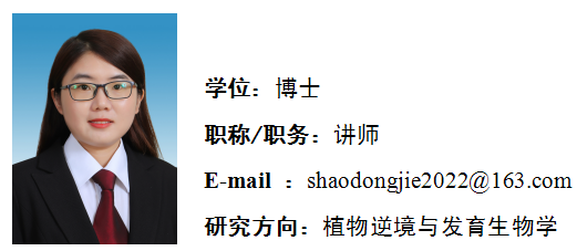 2021年12月毕业于山东农业大学发育生物学专业,获理学博士学位。2022年5月进入枣庄学院PA集团官网工作。主要从事作物非生物逆境胁迫下根端发育的分子机制研究。参与国家自然科学基金项目1项。以第一作者/并列一作身份在《Journal of Experimental Botany》、《Planta》学术期刊上发表SCI论文2篇。