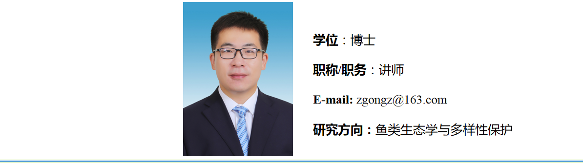 2014年6月毕业于山东大学海洋生物资源与环境专业,获理学学士学位;2019年6月毕业于中国科学院水生生物研究所水生生物学专业,获理学博士学位。2019年7月至2020年10月,在水利部中国科学院水工程生态研究所任助理研究员;2020年11月至今,在枣庄学院PA集团官网任教。研究方向集中在淡水鱼类的生态适应、进化生物学及多样性保护。近年来在《Ecological Indicators》《Global Ecology and Conservation》《Zootaxa》及《湖泊科学》等国内外学术期刊上发表论文二十余篇,担任《Zootaxa》《Animals》《Journal of Vertebrate Biology》《水生生物学报》等学术期刊的审稿人。在校主讲《动物生物学》《生态学》《文献检索与论文写作》及《生物课件制作与应用》等课程。现主持山东省自然科学基金1项、教育部产学合作协同育人项目1项,参与国家自然科学基金3项。