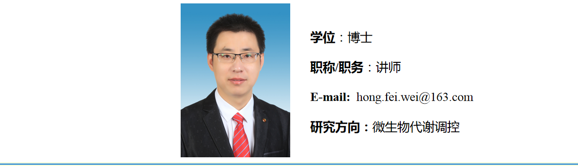 2018年3月毕业于中国科学技术大学生物学专业。2018年4月至枣庄学院PA集团官网工作。主持山东省自然科学基金、中国科学院开放基金、枣庄市科技基金等项目;参与国家“863”计划课题、中国科学院科技服务网络倡议专项基金、国家自然科学基金青年基金等项目。主讲《生物化学》《微生物学》《发酵工程》《酶工程原理与技术》《有机波谱分析》《现代仪器分析》《分子生态学》等课程。研究方向:微生物代谢调控。主要致力于微生物菌种选育、代谢网络分子改造、发酵工艺开发及产物纯化与鉴定等。已发表SCI论文多篇,申请国家发明专利多项。
