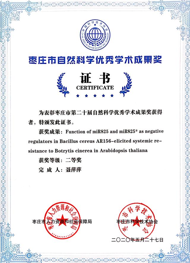 在教学的同时,积极投入到科研工作中,主要从事小分子RNA在植物内源免疫中,特别是在植物与真菌互作中的作用机理等表观遗传学研究,硕果累累,并及时将科研成果结合到课堂教学中,做到了“教”与“研”的无缝对接,带领本科生进入实验室,培养了学生的创新思维,拓宽了学生的专业视野。先后主持山东省推动黄河流域生态保护和高质量发展2023年省际合作项目1项、山东省自然科学基金项目1项、甘肃省科技成果登记1项、枣庄市科技发展计划项目1项、枣庄学院博士科研启动基金项目1项、企事业单位委托课题6项;在《Journal of Integrative Plant Biology》《Molecular Plant Pathology》《Frontiers in Plant Science》《International Journal of Molecular Sciences》等期刊上发表SCI论文多篇,其中SCI一区5篇、专利6项;荣获:甘肃省科技成果登记1项、“枣庄市第二十届自然科学优秀学术成果奖”二等奖、“枣庄学院2019年度高质量科研成果奖”二等奖。