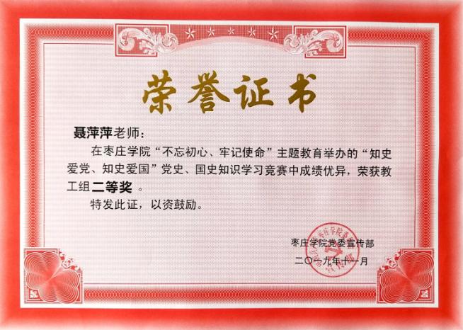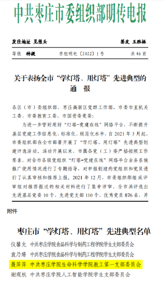 作为教工第一党支部副书记、灯塔管理员,时刻以一个优秀共产党员的标准严格要求自己,以双周三主题党日、三会一课、民主生活会为契机,以“灯塔-党建在线”、“学习强国”为平台,加强政治理论学习。党务工作扎实,争先创优意识强。2024年,带领党支部获批:首批枣庄学院“党建工作样板支部”;2025年,支部获批:首批枣庄学院“双带头人教师党支部书记工作室”,同时被评定为“枣庄学院五星级党支部”。此外,将主题党日、组织生活会及民主评议党员大会、支部大会和支部委员会等学习通知、会议总结、党费收缴台账等及时上传到“灯塔-党建在线”山东e支部模块。荣获:枣庄市“学灯塔、用灯塔”先进典型-优秀党员、枣庄学院“知史爱党、知史爱国”党史、国史知识学习竞赛教工组二等奖、教工第一党支部-优秀党员、学习强国学习达人。