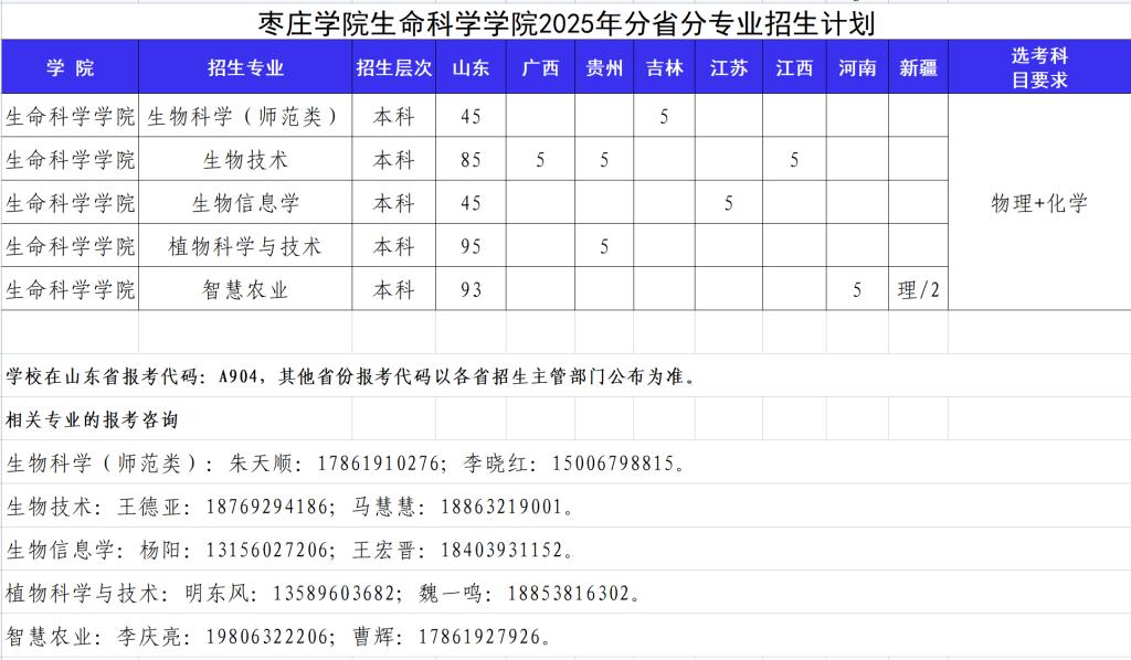 枣庄学院PA集团官网2025年分省分专业招生计划