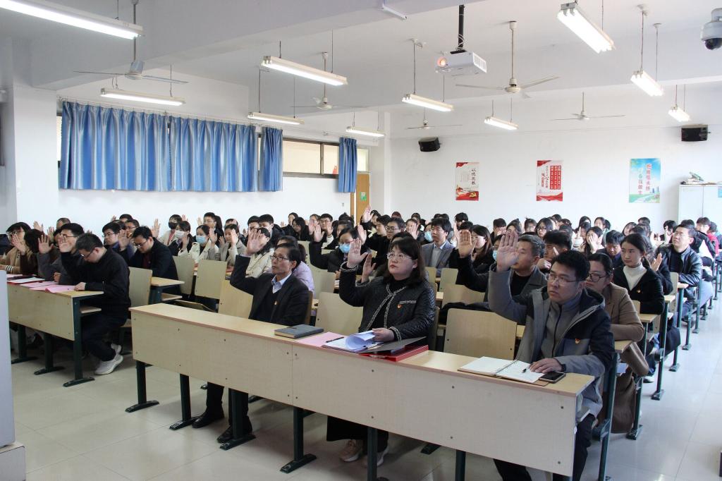 大会在庄严的国歌中拉开序幕。会上,全体党员表决通过了大会选举办法、总监票人、监票人和计票人,宣布了学院新一届委员会委员候选人预备人选情况。经过无记名投票选举,王玉海、王正荣、李媛媛、陈青、陈原国、郭传鑫、韩笑7名同志当选中共枣庄学院PA集团官网第一届委员会委员。大会在庄严的国际歌中圆满落幕。会后,学院召开第一届党委第一次全体会议,经过选举,郭传鑫同志当选PA集团官网学院第一届党委书记,王玉海、韩笑为党委副书记,并讨论确定各委员的职责分工。