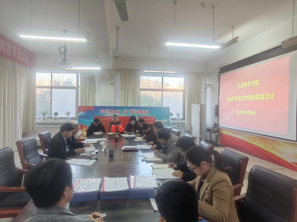 党总支会议由党总支书记郭传鑫同志主持,首先进行了“第一议题”贯彻习近平总书记关于国家粮食安全的重要论述的学习,传达了学校党建考核会议精神、研究关于申报全国标杆院系的工作安排任务,研究了关于2023年职称评审工作的安排部署等事宜;党政联席会议由副院长王玉海同志主持,会上听取并研究前良科技小院近期工作安排,研究关于2023年学院经费目标完成情况汇报及下一步的工作推进计划,研究关于科技繁荣计划活动开展情况汇报及近期工作安排等议题。