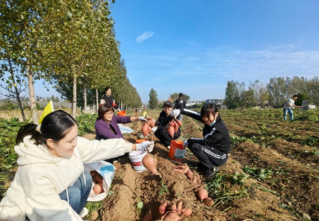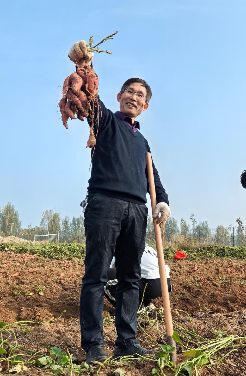 寒来暑往,秋收冬藏,走进红薯新品种引进示范种植基地,只见一株株茂盛的红薯藤蔓铺展开来,长势喜人。活动现场,师生们热情高涨,干劲十足,纷纷挽起袖子、俯下身子,在田间忙碌,割秧、翻土、刨挖、去泥、分拣、称重、装袋、搬运,一个个带着泥土芬芳的红薯个体均匀,色泽饱满诱人,格外亮眼。大家时而弯腰干活,时而起身交谈,脸上都洋溢着灿烂的笑容,田间地头里呈现出一派农事忙、农业兴的喜人景象。