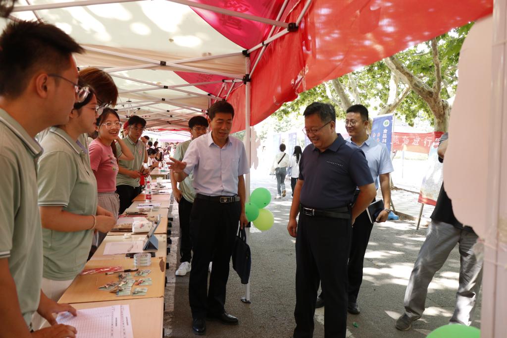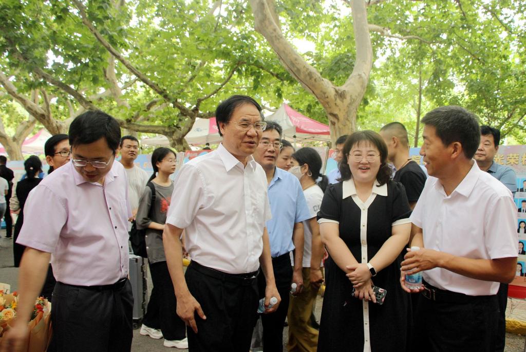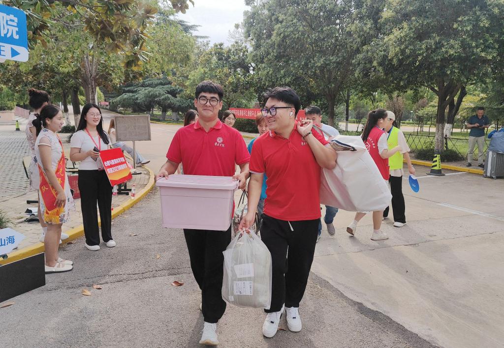 在迎新点,校党委副书记、校长李文喜,校领导丰雷、安涛、张昌林莅临迎新点指导工作,与前来报到的新生亲切交谈,勉励同学们以良好的精神面貌迎接崭新的校园生活。并亲切慰问了工作人员及学生志愿者,对志愿服务团队的辛勤付出予以充分肯定和感谢。